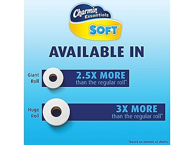 Pack contains 24 giant rolls 300 sheets per roll of charmin essentials strong toilet paper charmin s strongest 1 ply toilet paper clog safe and septic safe. More convenient more value and more gos per roll than our double roll so you can change the roll even less often. The leading bargain brand charmin essentials soft is long lasting. Procter gamble 96798 4 giant rolls charmin essentials soft bath tissue.